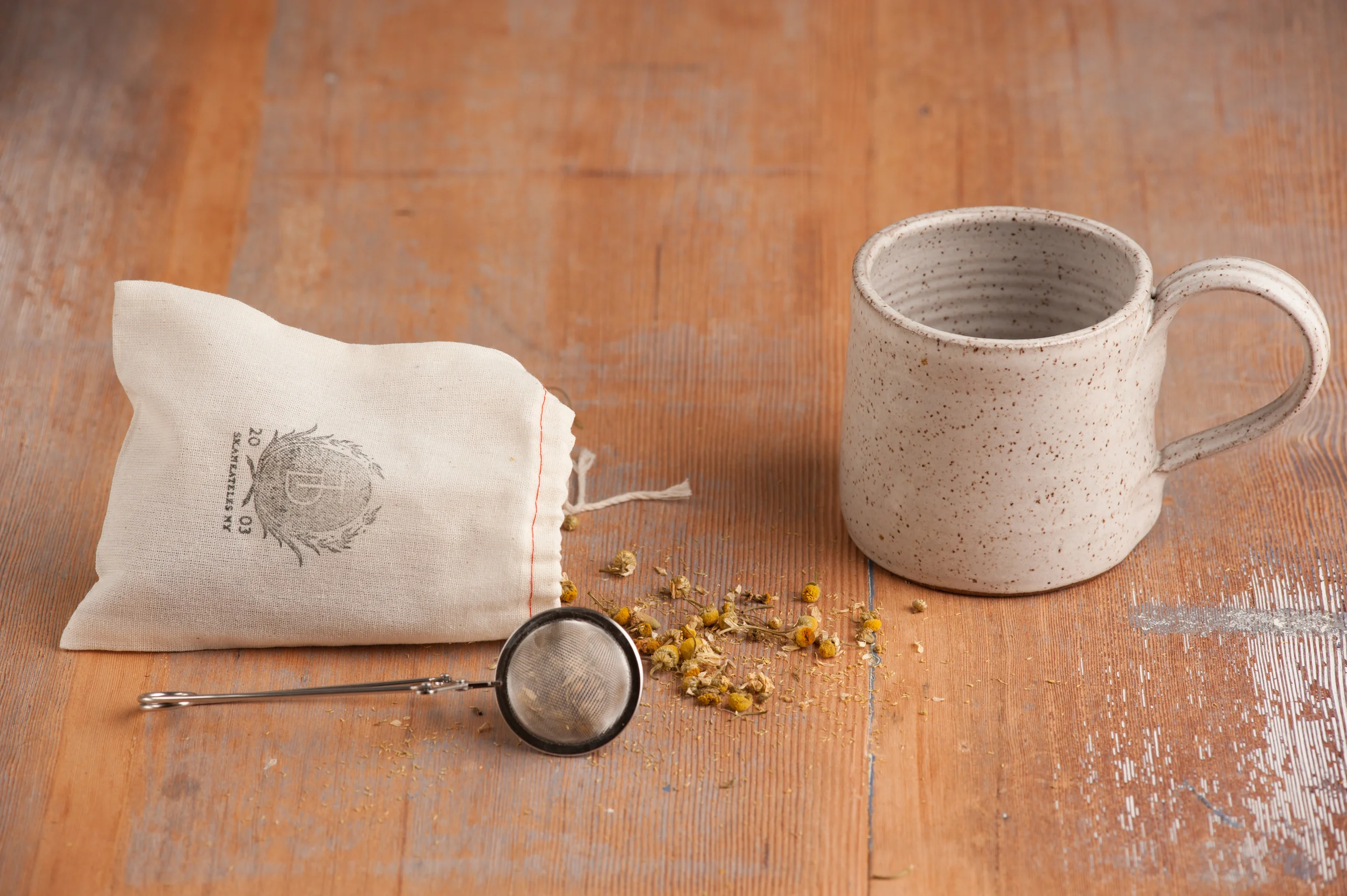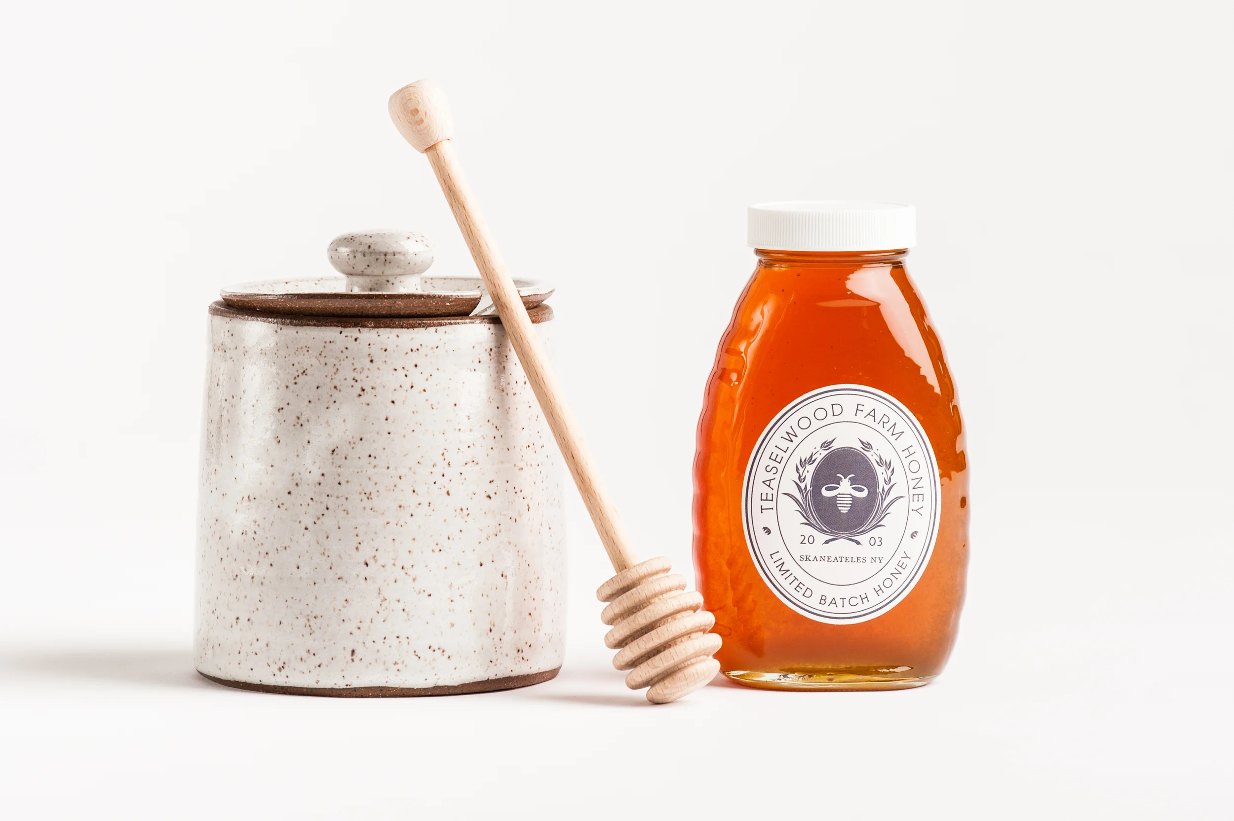 We even offer a couple quaint gift sets, one featuring our honey and a hand-thrown stoneware honey pot and dipper, and the other, a farmhouse tea gift box with a stoneware mug, tea infuser and organic Chamomile tea if you’re looking to brighten someone under the weather’s day.